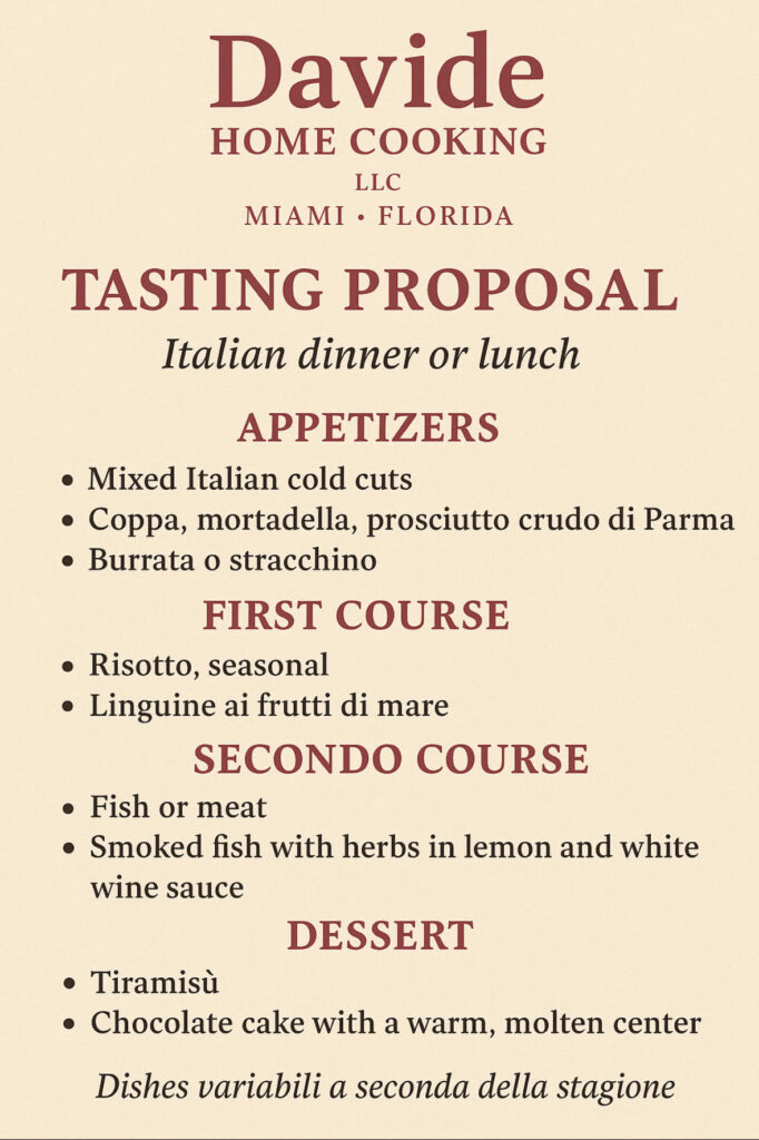 SPECIAL TASTING MENU . . . . Your Private Chef